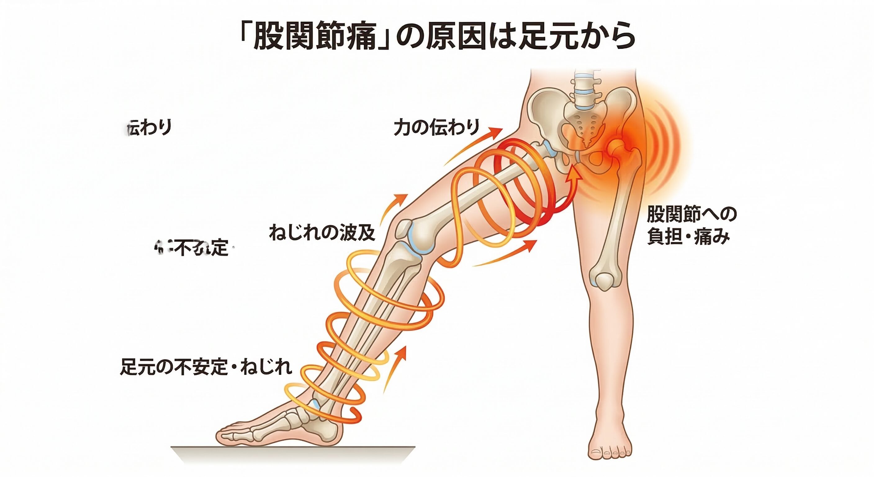 股関節だけを診るのではなく、足先から頭までの**「つながり」を重視**します。