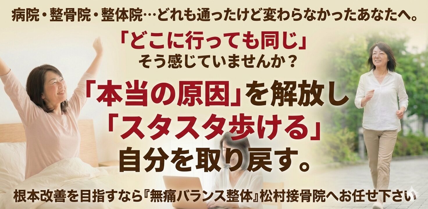 無痛バランス整体は保険外診療です。健康保険の取り扱いはしておりません。
